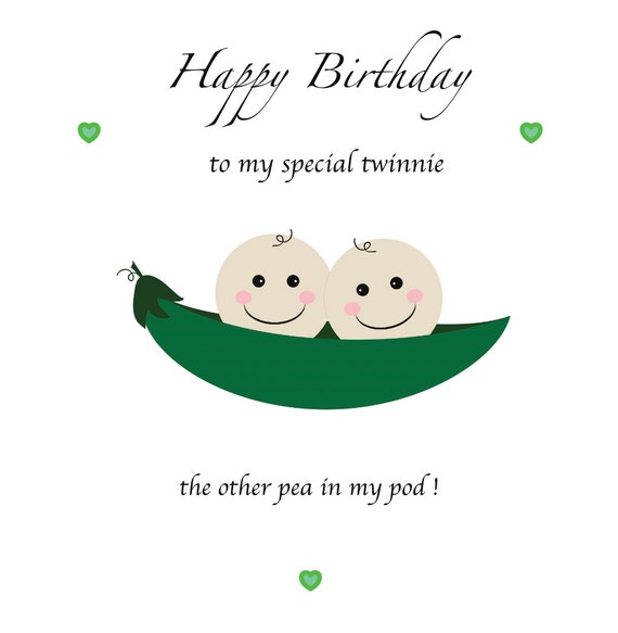 Twins Birthday Card, Two Peas in a Pod, to Me Twinnie, the Other