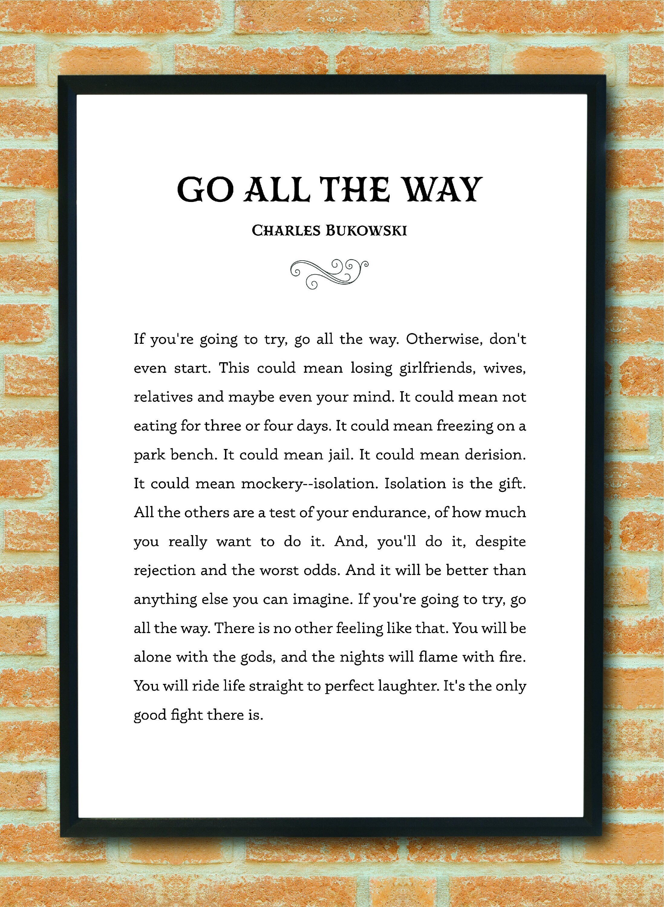 Buy Go All the Way Charles Bukowski Quote Print Digital Download