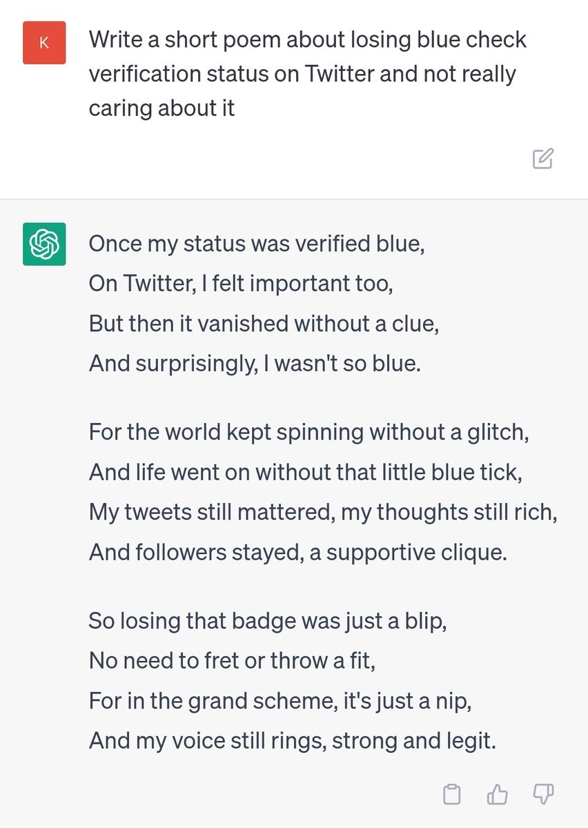 Alexandria Villaseñor on X: “chatgpt wrote me a poem about losing