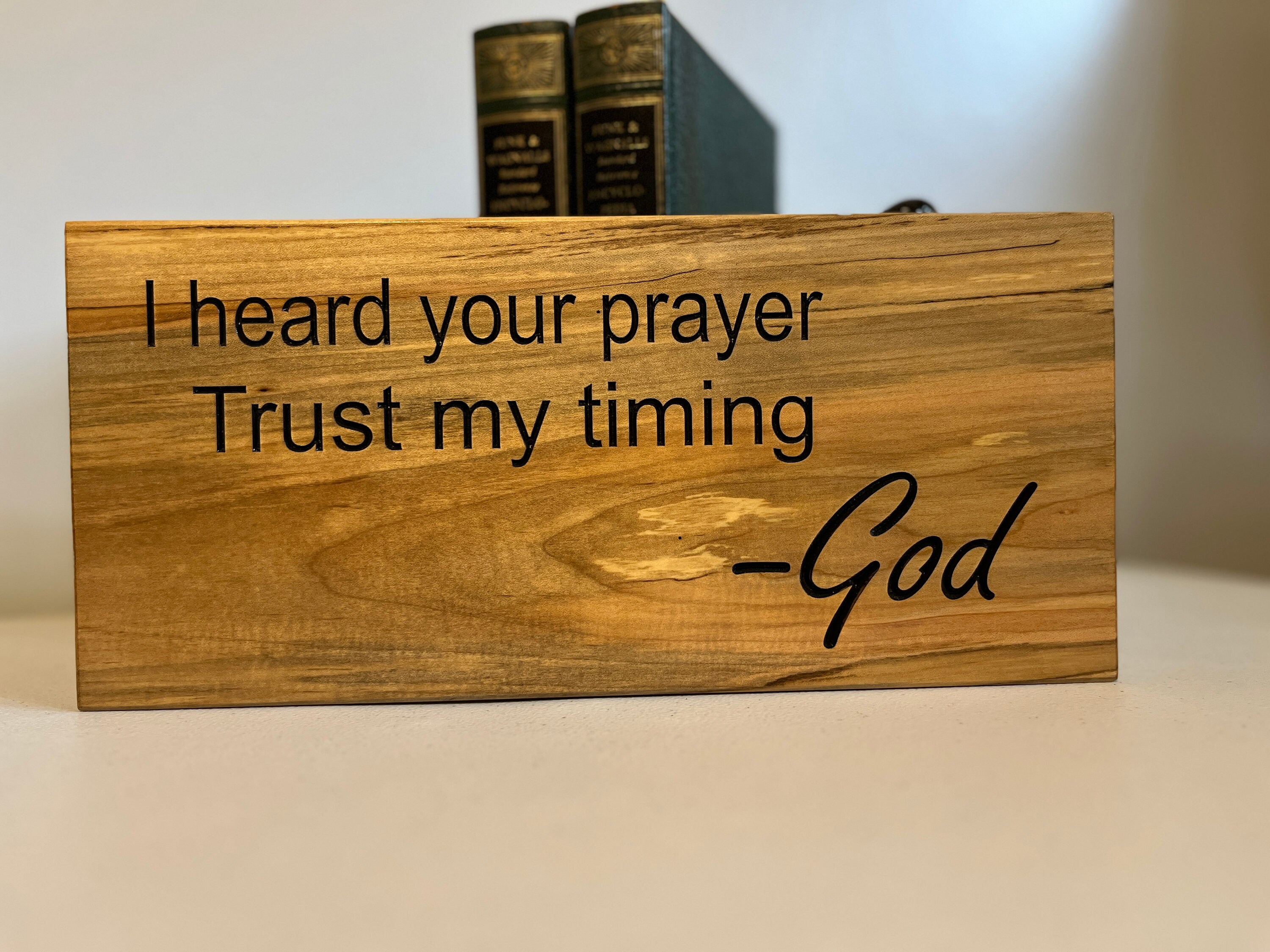 I Heard Your Prayer Trust My Timing Mini Bible Verse Sign